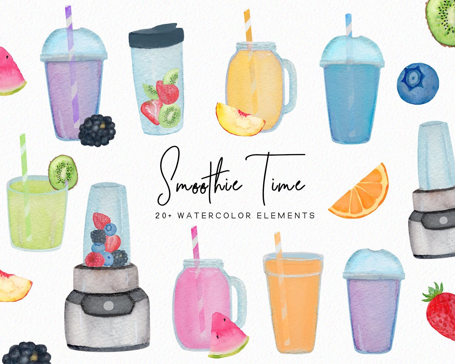 Smoothie Clip Art Watercolor Smoothies Watercolor Fruit Etsy New Zealand