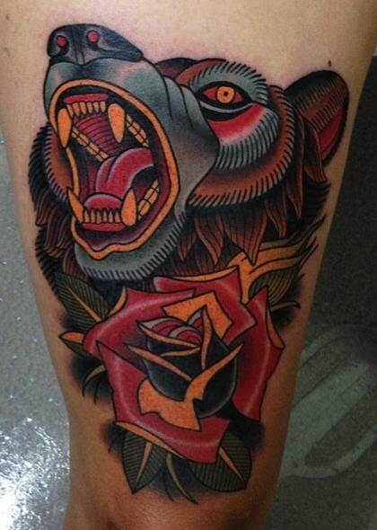 American Traditional Bear Tattoo By Drew Tattoonow